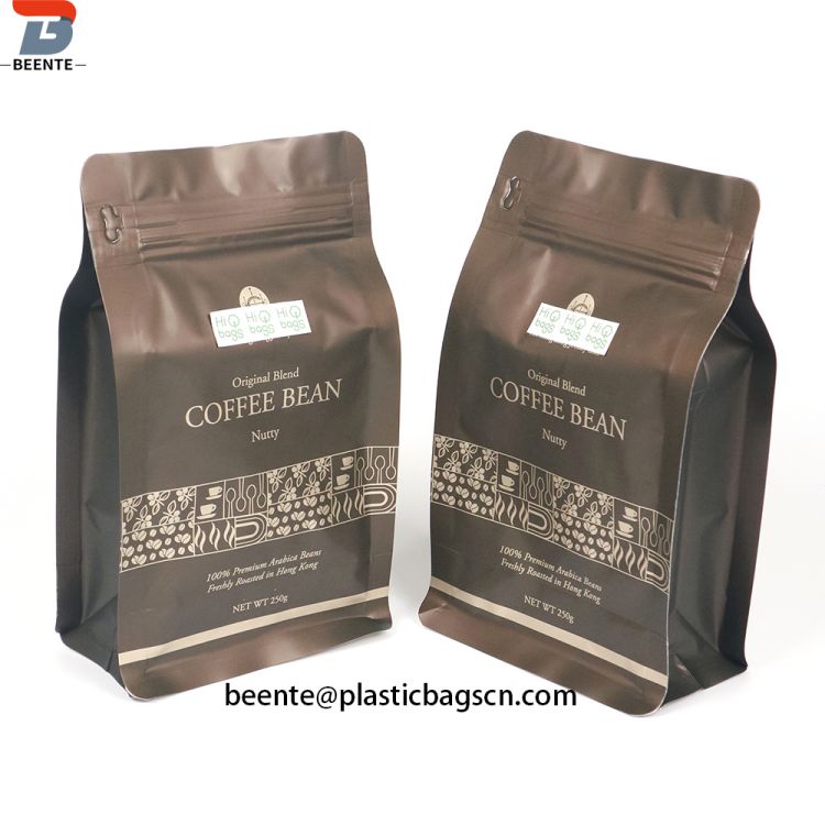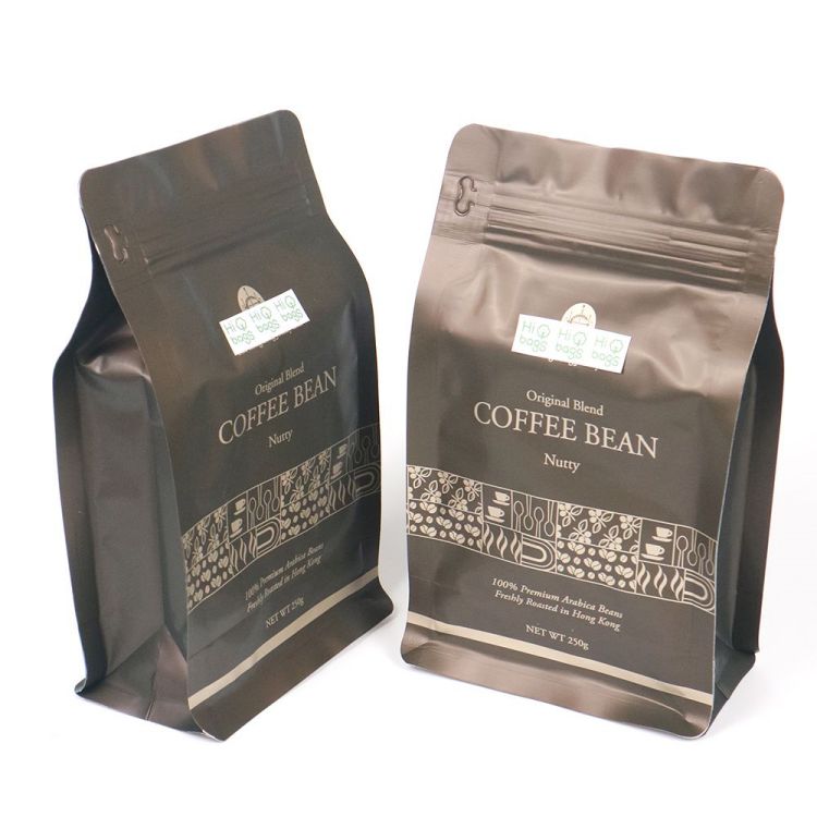 अनुकूलन प्रिन्ट गरिएको पुन: प्रयोग गर्न मिल्ने म्याट कालो पन्नी 250g कफी पाउच भल्भको साथ